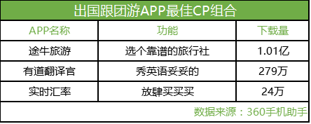 圖:360手機助手大數據推薦出國自由行最佳APP組合