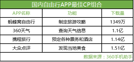 圖:360手機助手大數據收集了眾多用戶國內自由行APP組合